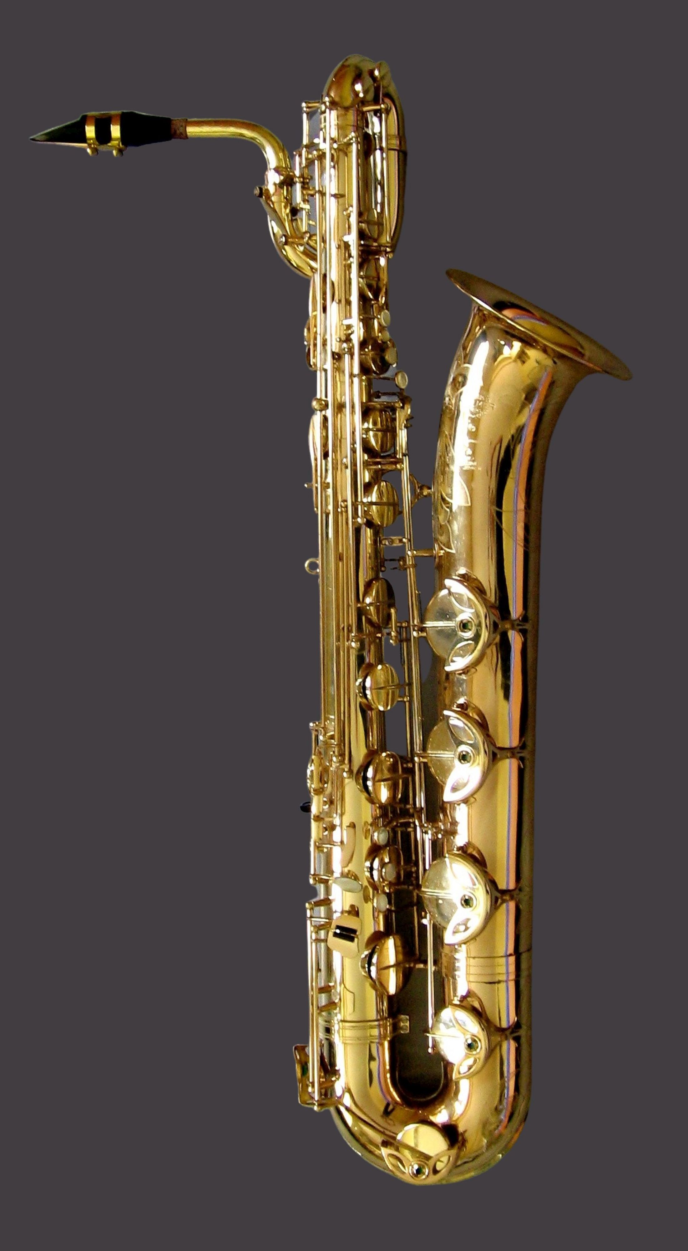 Le saxophone baryton se distingue des autres saxophones par son corps supérieur qui comporte une boucle, permettant à l'instrument de conserver une taille raisonnable. Une autre particularité est le doigté qui comporte une clé supplémentaire permettant d'atteindre le la grave, correspondant au do grave du violoncelle (les autres instruments descendant au si ♭